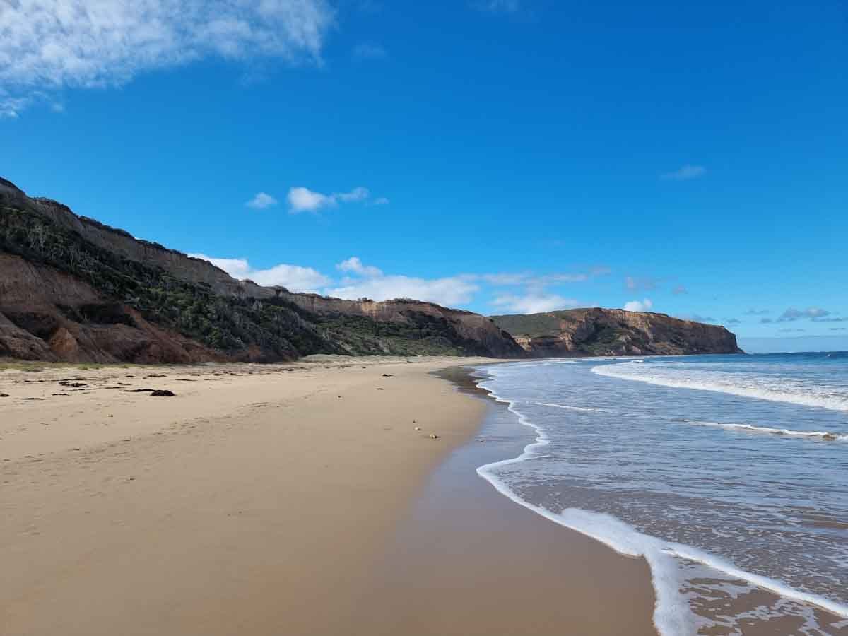 There are a lot of stairs to get onto this beach so unfortunately you may want to skip this beach if your dog is too old or injured to cope with stairs. A better option is Urquhart Bluff a little further along the GOR.