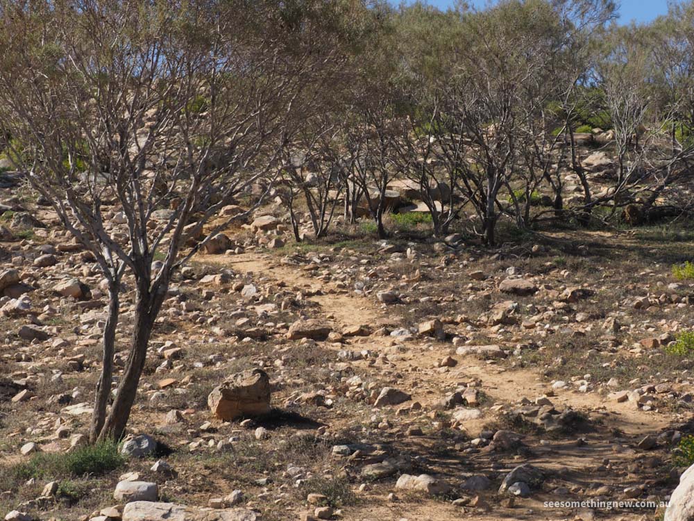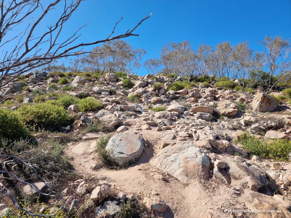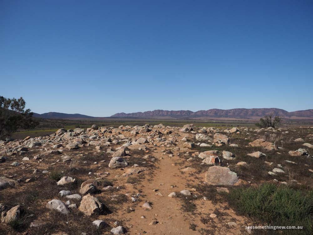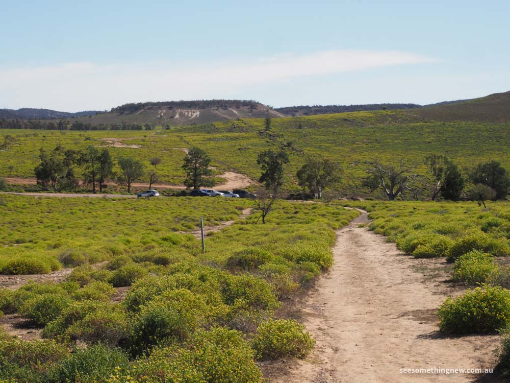 A nice short walk at Rawnsley Park Station for views onto the bluff, the caravan park and cabin accommodation and out towards the other mountain ranges. At the right time of year after rain, the start of the walk is surrounded by a sea of yellow flowers.
